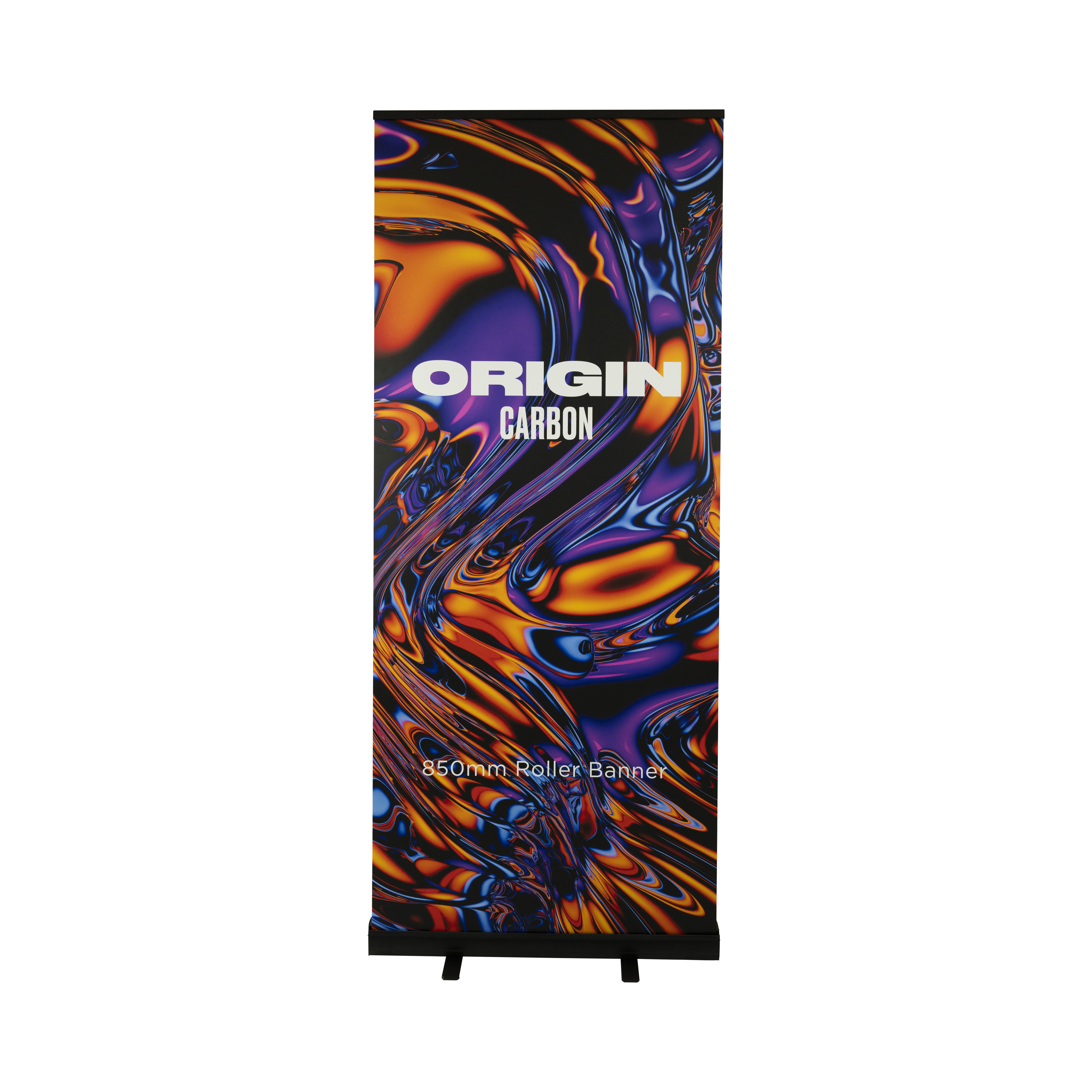 Avec sa finition noire élégante et épurée, le roller banner Origin Carbon met parfaitement en valeur votre visuel.